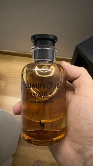 Fragrância árabe em frasco de vidro com tampa texturizada. - Frasco com detalhes em relevo. - Etiqueta com nome da fragrância e detalhes em azul. Lote 50€ Sem caixa