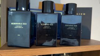 Conjunto de três perfumes da linha Zara Homem. - Memorable Oud - Elevated Oud - Virtuous Oud - Perfumes criados por Alberto Morillas.