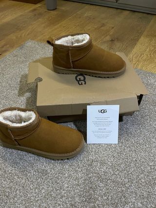 Botas UGG clássicas, novas e em excelente estado. Perfeitas para manter os pés quentes e confortáveis. - Material exterior em camurça. - Forro interior em lã sintética. - Sola de borracha antiderrapante.