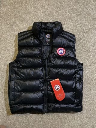 Colete acolchoado da marca Canada Goose. - Design moderno e elegante. - Fecho frontal. - Gola alta. - Patch icónico da marca no peito.