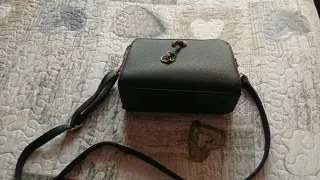 Carteira elegante em preto com acabamentos dourados. - Design moderno e sofisticado. - Alça de ombro ajustável. - Fecho com detalhe em metal dourado. - 4 bolsas com fecho, muito espaçosa