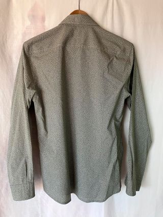 Camisa de manga longa com um padrão subtil. - Padrão em tons de cinza e multicolorido. - Gola clássica.