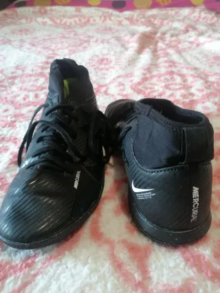 Sapatilhas desportivas Nike Mercurial em preto. - Design moderno e arrojado. - Detalhes em relevo na parte frontal. - Cano médio para maior suporte. - Logótipo da marca visível.