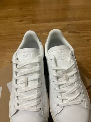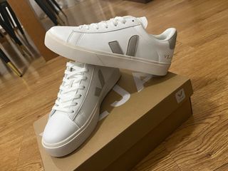 Sapatilhas da marca Veja, modelo Campo, novas. - Cor branca com detalhes em cinza. - Design moderno e versátil. - Elegantes