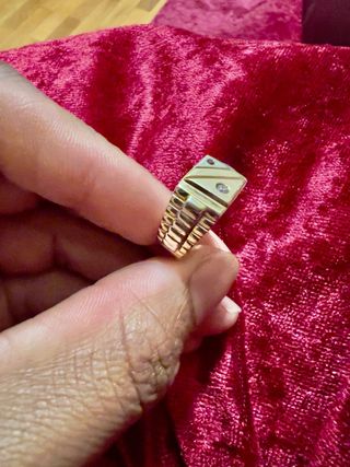 Anel elegante em ouro com detalhes em pedras. - Design moderno e sofisticado. - Acabamento em ouro de alta qualidade. - Detalhes em pedras preciosas.