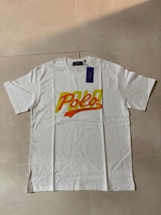 T-shirt da Polo Ralph Lauren com um design gráfico vibrante. - Estampa Polo em amarelo e laranja. - Detalhe Ralph Lauren na parte inferior da estampa.
