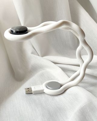 Candeeiro moderno com design moldável e acabamento branco. - Conexão USB. Ideal para Laptop. - Estrutura flexível. - Design contemporâneo.