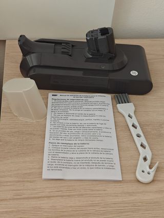 Conjunto de bateria para aspirador, com escova de limpeza e manual de instruções. - Bateria para máquina de aspirar. - Escova de limpeza. - Manual de operação e segurança. Não sei dizer para que marca ou modelo é mas se alguém souber que me diga. Obrigada.