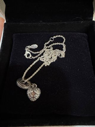Colar da Pandora com um pingente em forma de coração, adornado com detalhes delicados. - Design de coração com asas. - Fecho de argola. - Corrente fina e elegante.