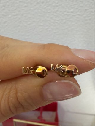 Par de brincos da marca Michael Kors em tom dourado. - Design com o logo da marca. - Fecho de pino.