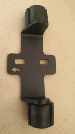 Soporte de metal negro con detalles de goma. - Diseño robusto. - Indicador de dirección con flecha.