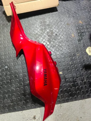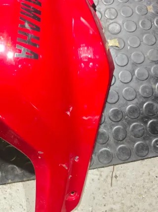 Painel lateral direito para Yamaha MT07 na cor vermelha. Tem um pequeno dano indicado na foto - Peça de carenagem. - Logotipo Yamaha visível.