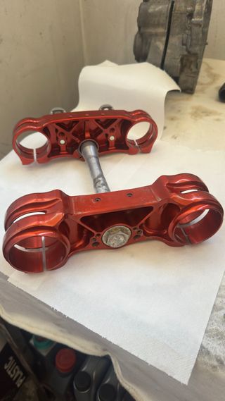 Mesas/Tijas para motocross/enduro Gas Gas Factory WP. As mesas estão em ótimo estado, com pintura vermelha vibrante. Vendido sem torres e parafusos possivel ajustar o offset de 22mm para 20mm o rolamento esta bom serve para ktm husqvarna e gas gas