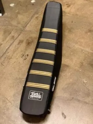 forra capa banco Thrill Seekers grupper seat cover para CR anos de 1987 a 2001 novo Forra de banco para Honda CR com design Thrill Seekers. - Design preto com detalhes dourados. - Logo Thrill Seekers estampado CR500