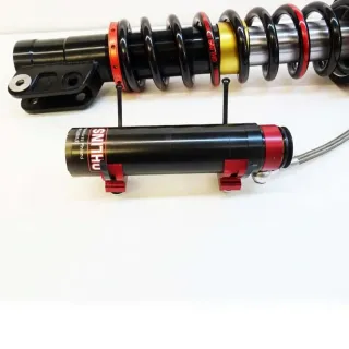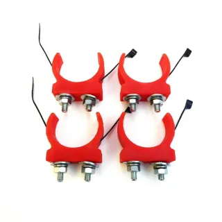 Conjunto de quatro suportes para reservatório remoto de suspensão competição. Reservoir Shocks Mounting Bracket Kit -45mm diametro - Cor vermelha. - Inclui parafusos e porcas.