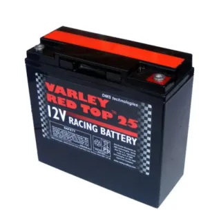 Bateria de 12V para competición 7kg - Modelo: Red Top 25 - Marca: Varley - Tipo: Racing Battery - Voltaje: 12V - peso 7kg Voltage: 12 Cap/Ah: 20 Kgs: 7.0 Dimensions (LxWxH): 181x77x167mm Terminations: M6 Female