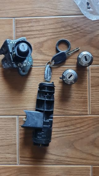 Conjunto de fechaduras e ignição original Fiat Punto, 3 portas, modelo 176, mk1. Inclui 3 fechaduras e 2 chaves originais + o canhão de ignição. As peças apresentam marcas de uso, mas estão em excelente estado geral. - Ideal para substituição em caso de perda ou avaria. - Peças usadas, mas em bom estado. - Conjunto completo para facilitar a instalação.