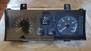 Painel de instrumentos usado para Renault 19. Em bom estado geral. - Modelo Renault 19. - Inclui velocímetro, conta-rotações e indicadores diversos. - Apresenta alguns sinais de uso, mas em boas condições. Quadrante. Conta quilómetros. Conta kilometros. Painel de instrumentos. Cluster. Velocimetro. Conta rotações. Indicador de temperatura. 2 quadrantes Renault 19 Dt, turbo diesel, com conta-rotações, possível montar no renault Clio e renault 21 Valor unitário