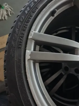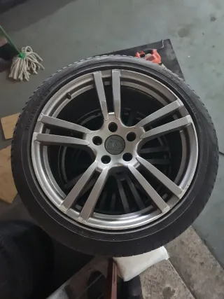 Conjunto de jantes Porsche R21. - Design elegante e desportivo. - Acabamento em cinza escuro. - Com alguns riscos superficiais - Com alguns riscos profundidade média