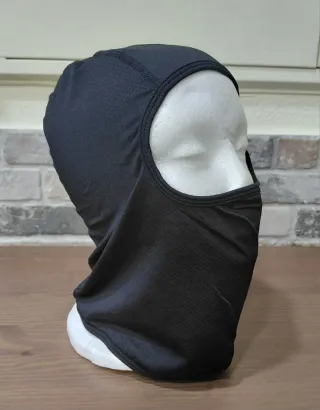 Balaclava preta em tecido. - Cobertura para cabeça e pescoço. - Abertura para o rosto.