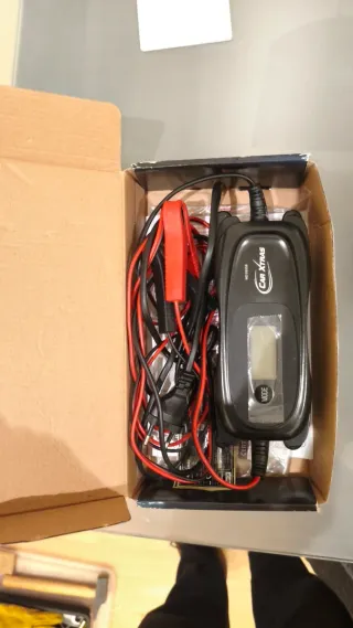 Carregador de baterias para carros e motos, fabricado na Alemanha. - Inclui cabos com pinças. - Design compacto e ergonómico.