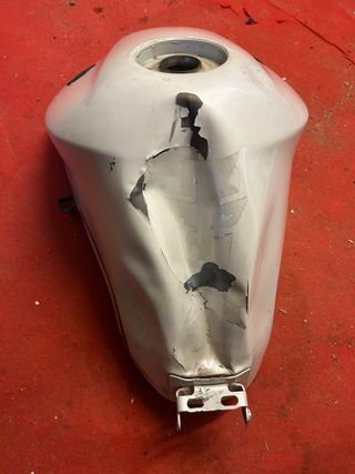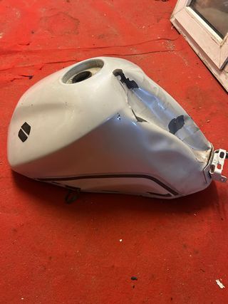 Depósito de combustível para Yamaha XJ6 com danos visíveis. - Cor: Branco - Danos na parte superior e lateral direita