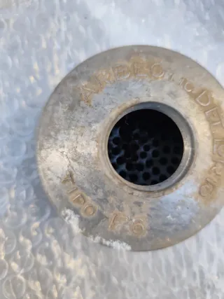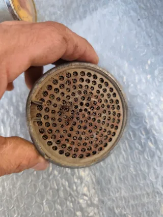 Filtro de carburador Dellorto, modelo F6. - Design circular com múltiplos orifícios. - Estrutura metálica. - Compatível com carburadores Dellorto. Encontra-se no estado da foto.