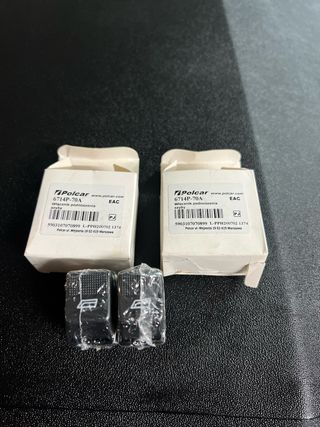 Conjunto de dois botões de elevação de vidros elétricos da marca Polcar. - Modelo: 6714P-70A - Número de peça: 5903107070899 L-PPH200702 1374 - Fabricante: Polcar - Endereço do fabricante: ul. Wejnerta 19 02-619 Warszawa