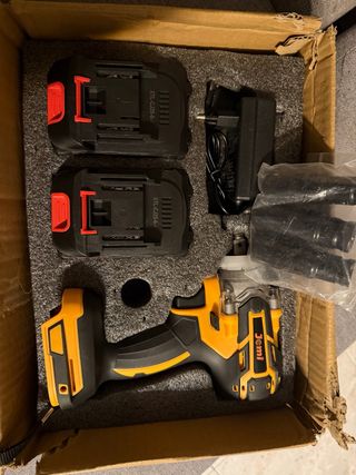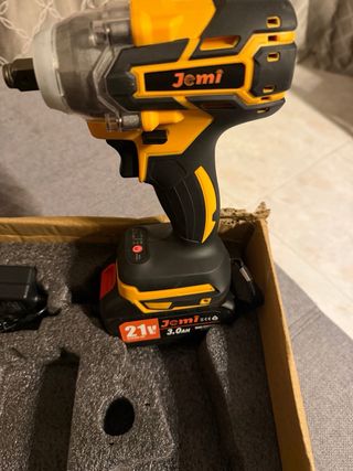 Pistola de impacto a bateria da marca Jemi, ideal para trabalhos diversos. - Inclui duas baterias. - Carregador de bateria. - Conjunto de soquetes.