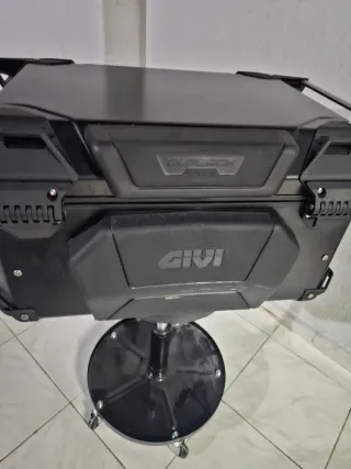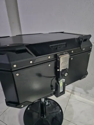 Top case GIVI OUTBACK EVO em preto. - Design robusto e durável. - Acabamento em alumínio. - Sistema de fecho seguro (2chaves). - Forro Interior Original GIVI. - Rede Original GIVI. - Proteção Lombar orihinal GIVI.