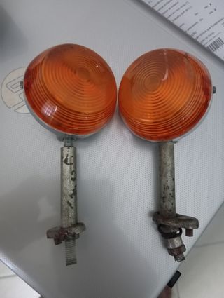 Par de piscas dianteiros antigos para Honda CB125 de 1976. Apresentam sinais de uso e desgaste, mas estão em bom estado geral. - Modelo clássico. - Lentes laranja. - Parafusos de fixação inclusos. - Precisar de restauro