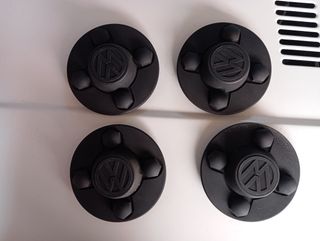 Jogo de 4 tampas para centros de jantes Volkswagen com furação 4x100. As tampas são pretas e estão em bom estado. - Modelo compatível com furação 4x100. - Cor: Preto. - Inclui 4 tampas. - Uma tem um apoio danificado mas funciona muito bem última foto de como estão no meu carro -tenho mais peças VW golf mk2