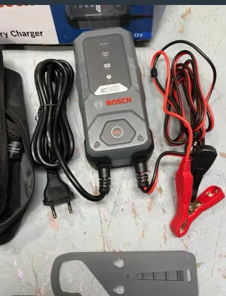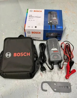 Carregador de bateria Bosch C10 para 12V. Inclui bolsa de transporte. - Modelo: C10 - Voltagem: 12V - Cor: Cinza e preto - Inclui bolsa de transporte Bosch