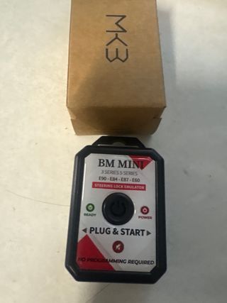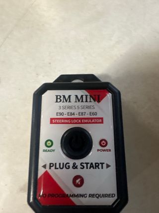 Emulador de bloqueio de direção para modelos BMW. - Compatível com séries 3 e 5 (E90, E84, E87, E60). - Plug & Start, sem necessidade de programação. - Indicadores LED de pronto e energia.