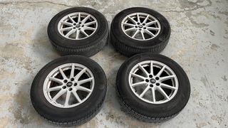 4 Jantes 17 Range Rover Evoque - 4 pneus ✅ Tamanho 17 - 7J / ET45 as 4 Jantes. ✅ Centro de jantes: 63.4 ✅ Jantes usadas com pequenas marcas de uso. ✅ 4 Pneus 225/65R17 ( marca: - 2 pneus Dunlop praticamente novos. - 2 pneus Michelin a meio uso (piso de inverno) ✅ Inclui válvulas. ✅ Entrega imediata. ❌ + info enviem mensagem.