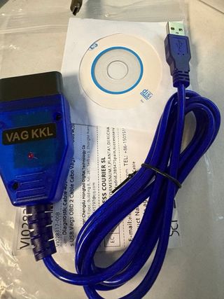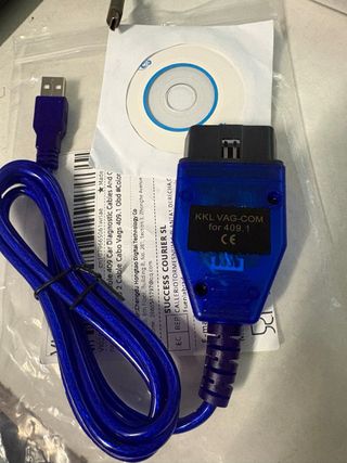 Cabo de diagnóstico KKL VAG-COM para carros. - Versão 409.1. - Inclui cabo USB azul. - Inclui CD com software.