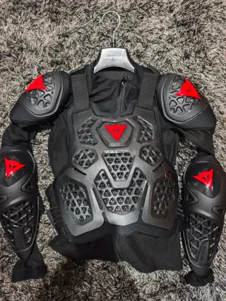 Proteção corporal Dainese MX2. - Design em preto com detalhes vermelhos. - Proteção para ombros e cotovelos. - Fecho frontal com zíper. S/m