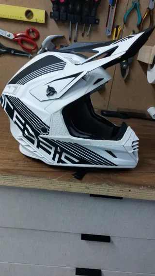 Capacete Acerbis para moto, em bom estado de conservação. - Design moderno com grafismos em preto e branco. - Viseira integrada. - Interior confortável.