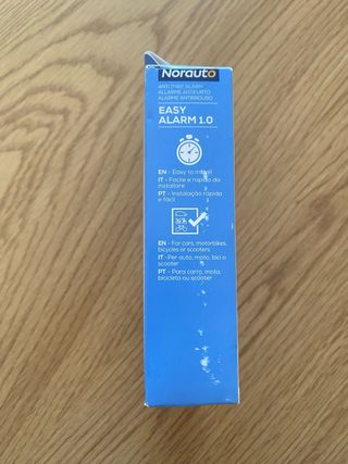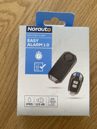 Alarme Norauto Easy Alarm 1.0 para mota ou bicicleta. Proteção contra roubo. - Resistente à água (IP65). - Som de 113 dB. - Inclui bateria CR2032.