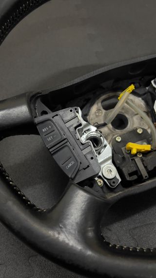 Volante para Volkswagen Golf 4/bora/passat - Material: Couro - Cor: Preto - Comandos no volante Volante usado, nao sei se os botoes funcionam.