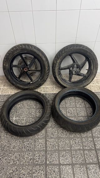 Jantes 13 honda x8r Jantes usadas, tem montado pneus usados em estado razoavel 140/60r13 kings tire 120/70r13 michelin Leva de oferta + 2 pneus usados 130/60r13 Maxxis 140/60r13 pirelli Jante frontal com disco incluido