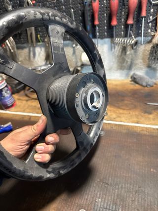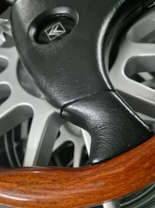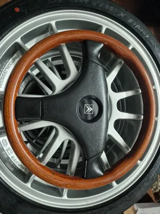 Volante Momo com aro em madeira. - Design clássico e elegante. - Detalhes em preto. - Como novo