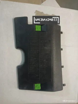 Tampa para a caixa de fusíveis de um VW Golf MK3, Vento e outros modelos compatíveis. Peça em plástico preto com dois fechos verdes. - Cor: Preto - Material: Plástico - Fechos: 2 verdes