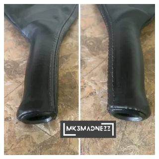 Fole para travão de mão de Golf Mk3, versão americana. - Material em pele preta. - Acabamento com costura. - Design específico para consola modelo USA.