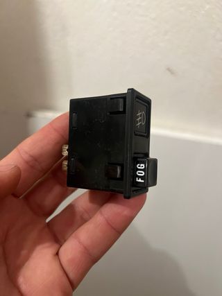 Botão de substituição para os faróis de nevoeiro do Honda CRX. - Símbolo de nevoeiro gravado. - Parte superior com símbolo e parte inferior com botão.