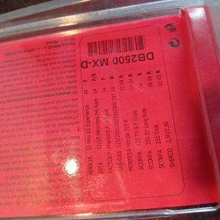 2 packs de Pastilhas de travão DP Brakes DB2500 MX-D. Compatível com as marcas e modelos que se encontram na imagem, Aprilia, Beta, Factory, Gastas, Montesa, Scorpa e Sherco. Compatível também com algumas bombas de travão chinesas para pitbikes.