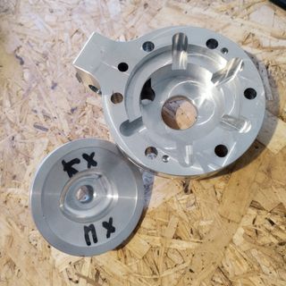 Vaso/caixa/depósito retentor de líquidos óleo e água em alumínio, para motos de Supermoto/Supermotard. Usado em excelente estado.