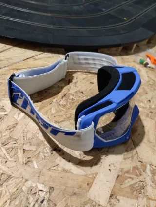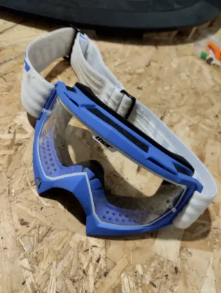 Óculos de motocross da marca Thor, modelo Enemy, em azul. - Lente transparente. - Tira elástica branca com logo. - Design ventilado na armação. Usados em bom estado.