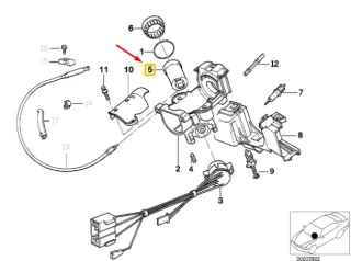 Conjunto de canhão de ignição com chave para BMW. - Compatível com modelos 3 (E36), 5 (E39) e 7 (E38). - Peça metálica e de plástico. - 2 chaves