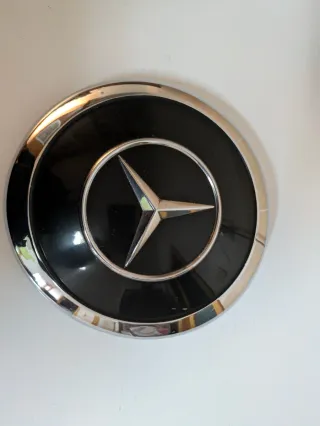 Tampão de roda clássico para Mercedes-Benz, compatível com modelos como o W113. - Design icónico da estrela de três pontas. - Acabamento cromado e preto brilhante. Ligeiro empeno!